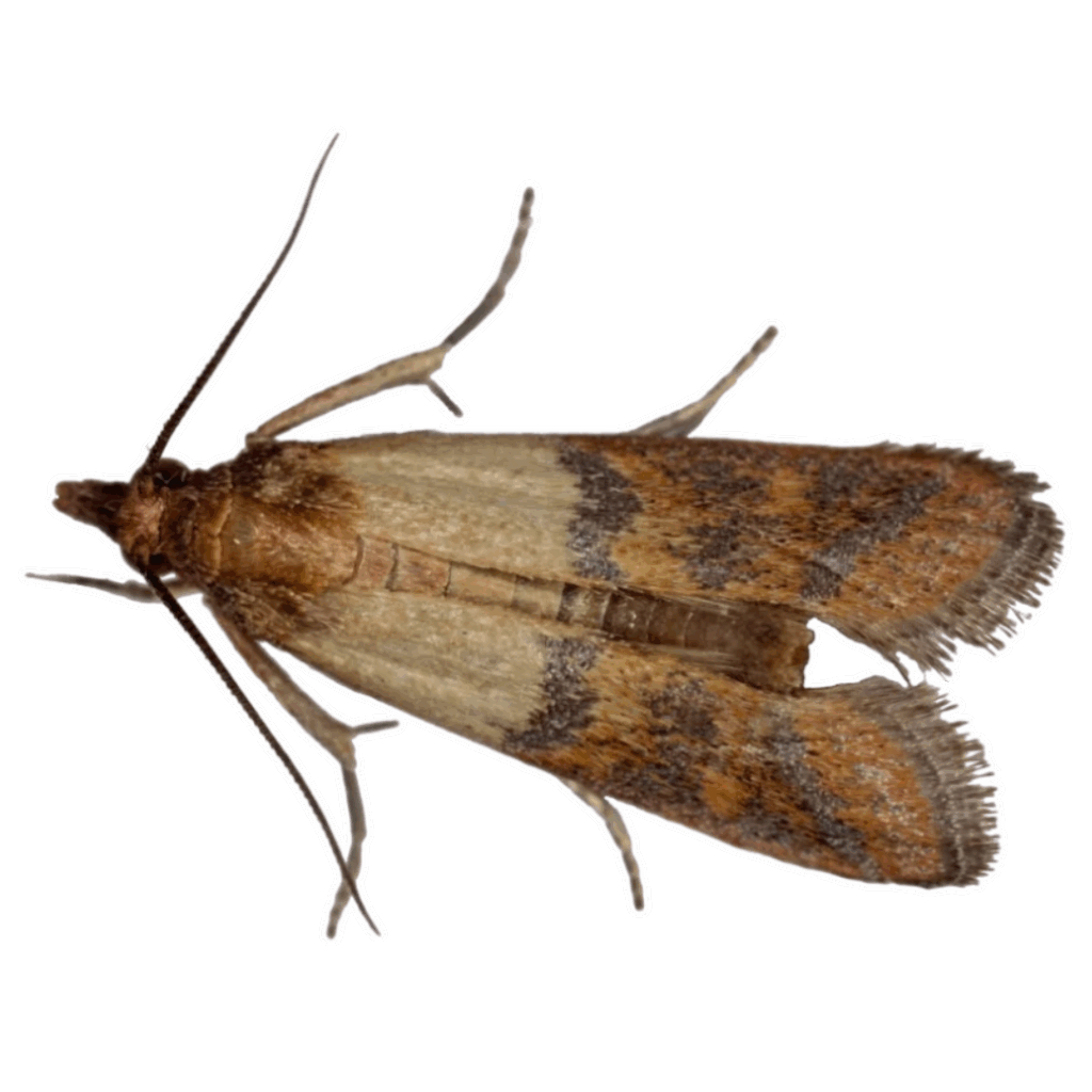 Moths are discreet pests that thrive in dark, undisturbed areas where food or fabric is readily available. Pantry moths, like the Indian Meal Moth, lay hundreds of eggs directly in stored grains, cereals, and pet food, allowing larvae to feed unnoticed until the infestation is advanced. Fabric moths, such as the Webbing Moth and Casemaking Moth, prefer closets, attics, and storage spaces, where they feed on natural fibers like wool, silk, and cotton. Because moths are small and their larvae often blend in with their food or fabric, infestations often go undetected until damage becomes obvious—making early detection and professional treatment essential.